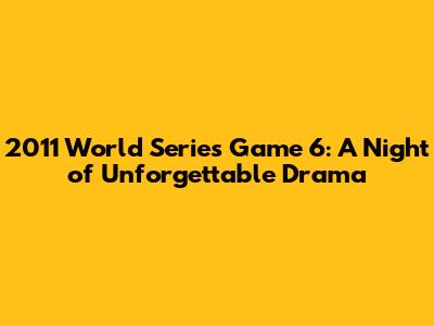 2011 World Series Game 6: A Night Of Unforgettable Drama