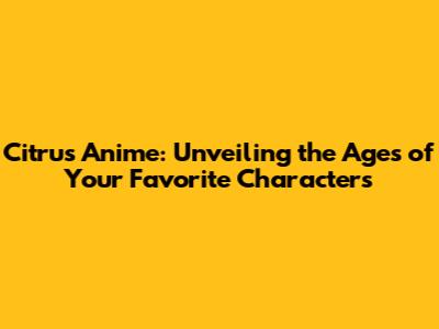 Citrus Anime: Unveiling The Ages Of Your Favorite Characters