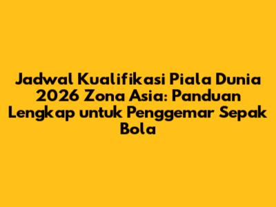 Jadwal pertandingan kualifikasi Piala Dunia 2026 zona Asia akan sangat dinantikan oleh para penggemar sepak bola. FIFA biasanya merilis jadwal resmi beberapa bulan sebelum dimulainya kualifikasi. Kalian bisa memantau perkembangan jadwal ini melalui situs resmi FIFA, federasi sepak bola negara masing-masing, atau media olahraga terpercaya. Jangan sampai ketinggalan informasi penting ini!