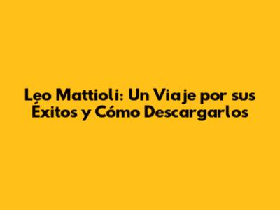 Leo Mattioli: Descargas De Éxitos Musicales Y Enganchados