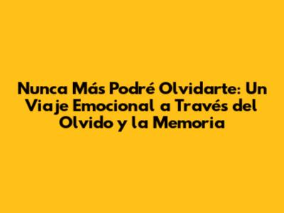 Nunca Más Podré Olvidarte: Un Recuerdo Inolvidable