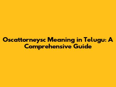 Oscattorneysc Meaning In Telugu: A Comprehensive Guide