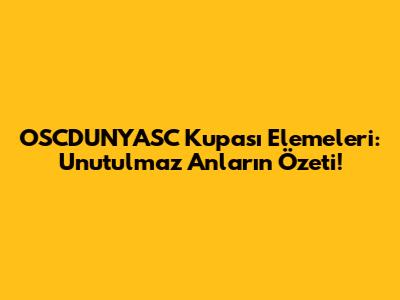 OSCDUNYASC Kupası Elemeleri: Heyecan Dolu Anlar!
